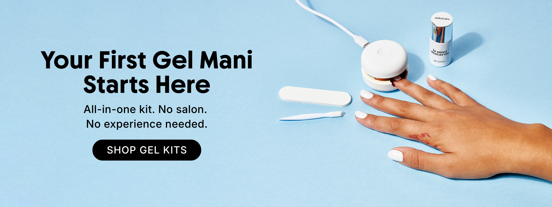 “It doesn’t get more compact and convenient than this tiny on-the-go gel manicure kit. You can skip the base coat and top coat on this one because the colored polish does it all on its own.”